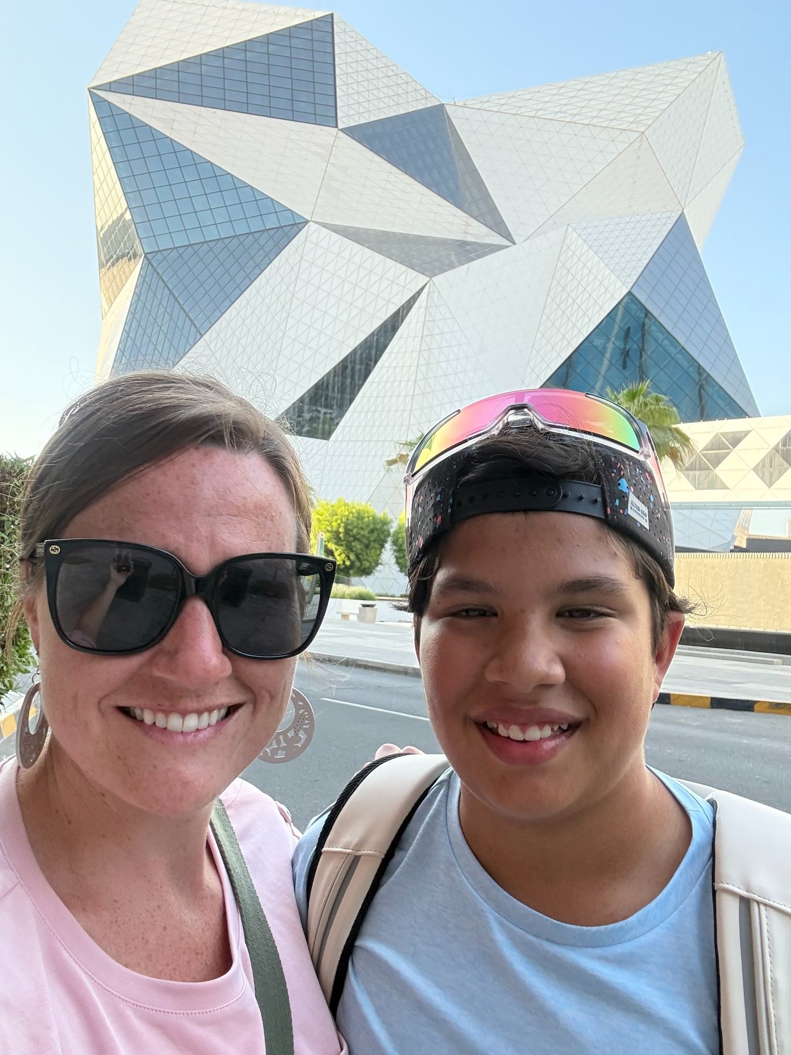 My son was very interested in a circuit tour, but they were only offering VIP tours for 1000 AED during our visit for groups of up to 4. While it would’ve been amazing for him to experience that, without my husband and youngest son, it just wouldn’t have been right so we decided to save this for our next stop in Abu Dhabi when we are all together. Instead, we looked around the small museum with a few activities, took some photos from the viewing deck on level 2, and then Micah did an F1 racing simulator. They also offer Karting and while the track looked awesome, it was incredibly hot, and again, it just didn’t feel right without the other half of our family. I was proud of Micah because he was satisfied with the $10 F1 simulator and really excited just to see the track, take some photos, and be there. He just kept saying, “I can’t believe I’m at the F1 track in Abu Dhabi. I never thought I’d go there as a kid.” It sure does a momma’s heart good to make a little magic for her son. After we were done, we asked about how we could get to the Yas Mall so we could glimpse Ferrari World. The really kind man working at the F1 shop let us know there was a free Yas Island shuttle we could catch so we headed outside to wait for the shuttle. What we didn’t know was that shuttle only goes to certain stops. So we ended up having to take this shuttle to the hotel area and then we had to wait for another shuttle. I believe there are 4 different shuttles, A1, A2, B, and C—but I didn’t research this too much but would recommend looking into it if you are staying on Yas Island or going there for a day. It probably saved us another $10 or so in taxi fare, but to be honest, was maybe more of a hassle than the $10 was worth (don’t tell Micah though as he kept begging me for a taxi as we waited outside in the 110 degree F sun, sweat dripping down our backs. Again though, I digress.