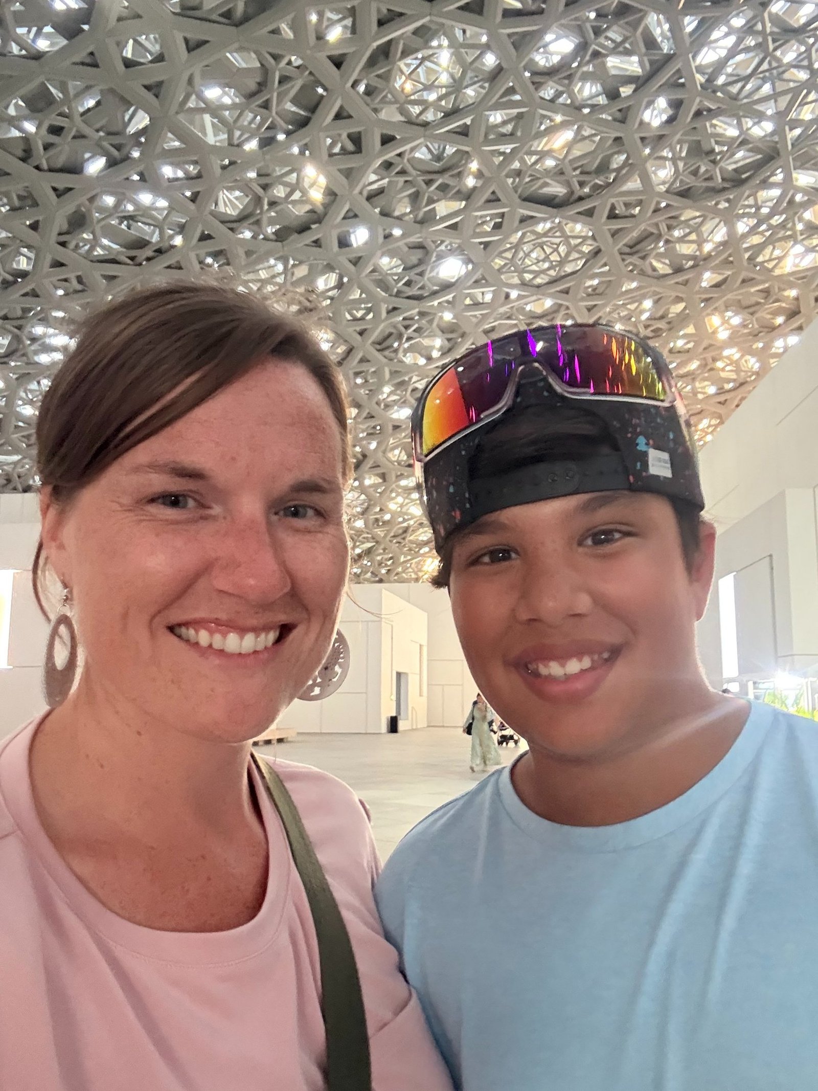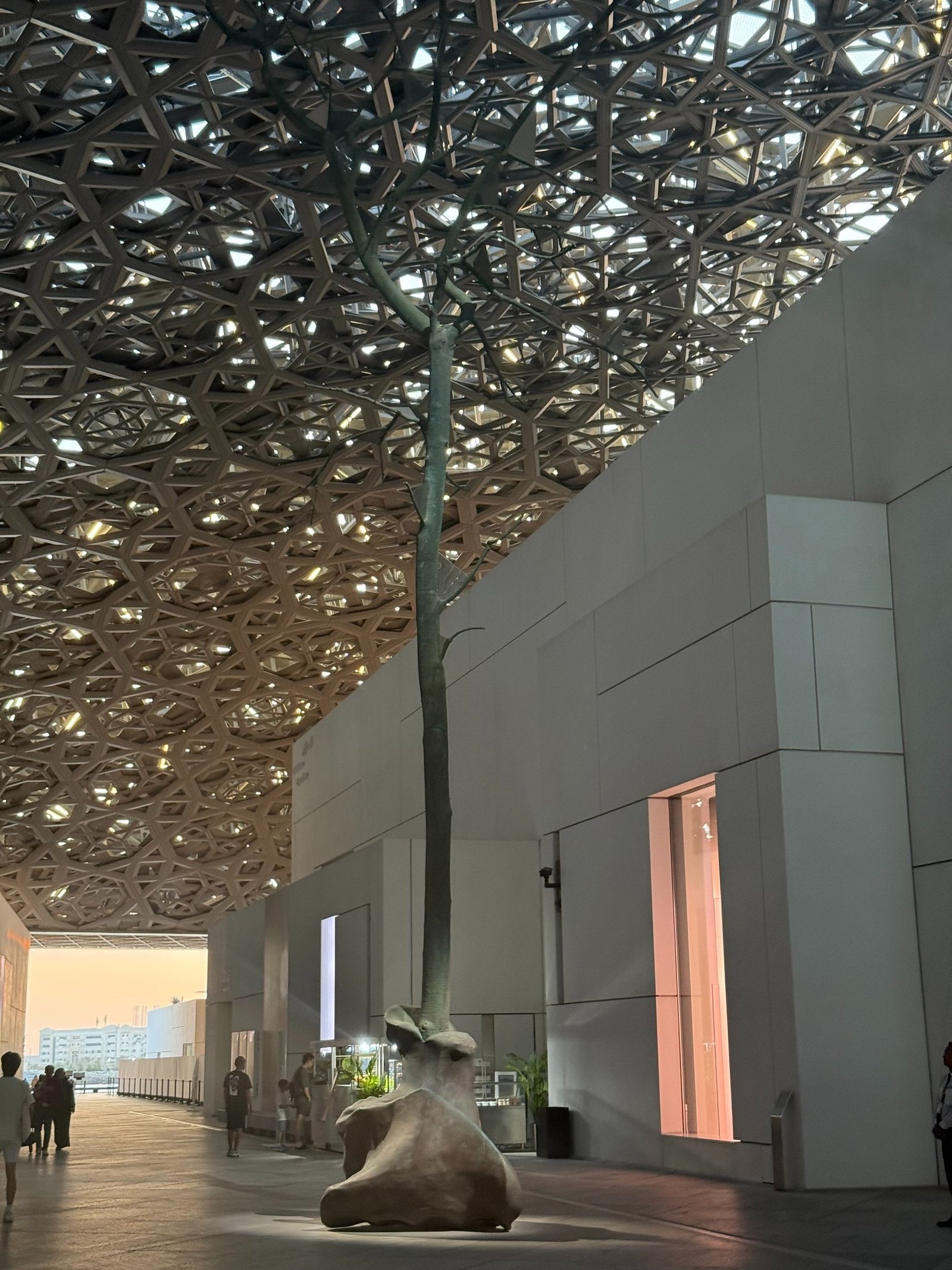 This stop was for me. I’ve always wanted to go to the Louvre in Paris, but when we were there last summer, it wasn’t a priority on a 24 hr stopover, not to mention I’m really the only one in our family who has any interest in going. So, I decided to drag Micah along to the Louvre Abu Dhabi because he is a really good sport. It really is a unique place, full of a wide variety of art and artifacts. It has simplistic beauty and the roof is stunning. They also have a small children’s museum, geared towards kids 8 and younger.