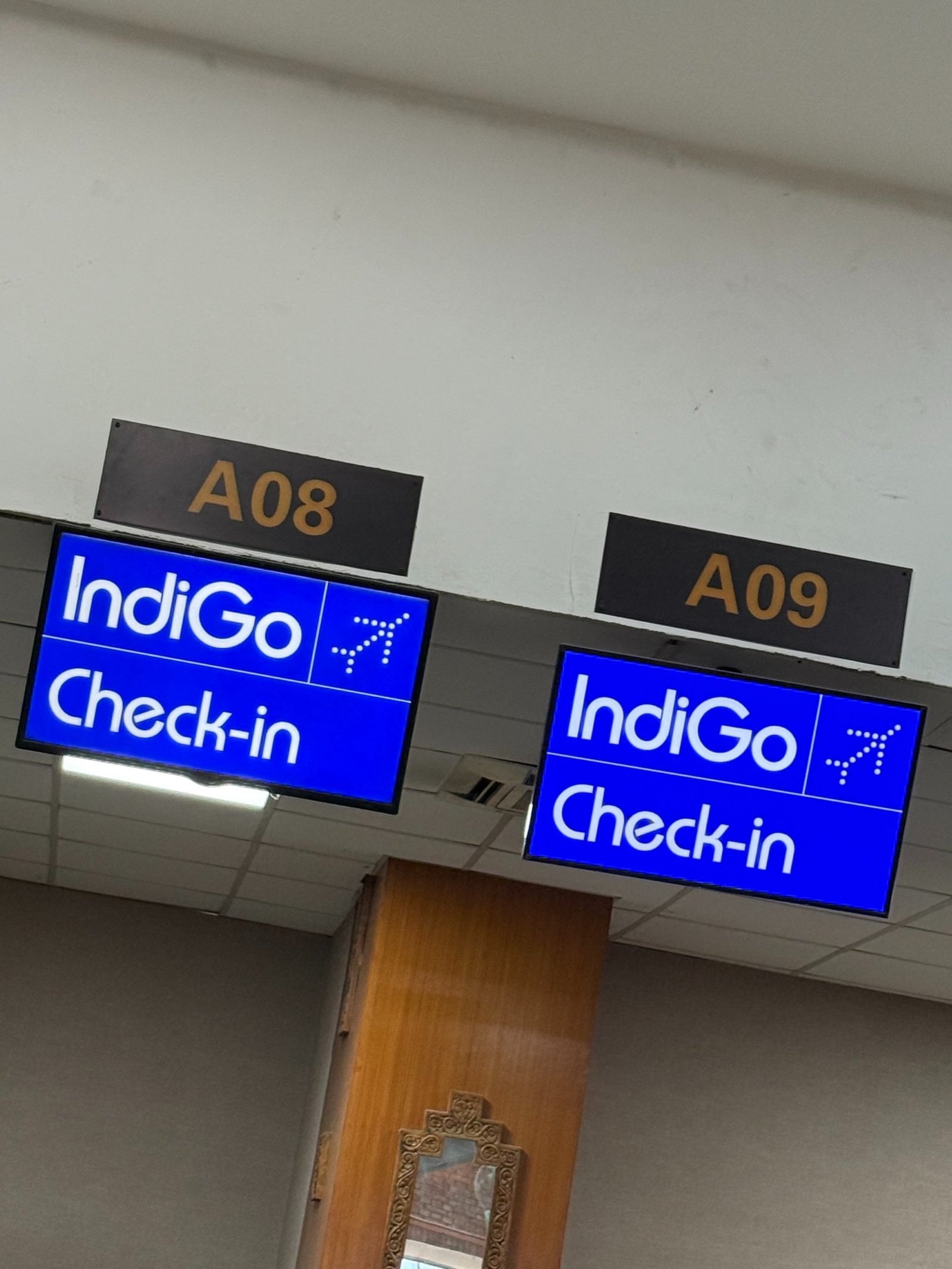 With Indigo, we presented our ticket, our passports, and our Indian visas as Delhi was our final destination. We had one suitcase each and the weight limit was 23kgs each. They weighed our bags together and as we were under the 69kg allowed for the 3 of us, we didn’t have to pay any luggage fees. From there, you head up the escalators. Before you can go on the escalator, a guard or attendant will check your boarding pass (check 1).