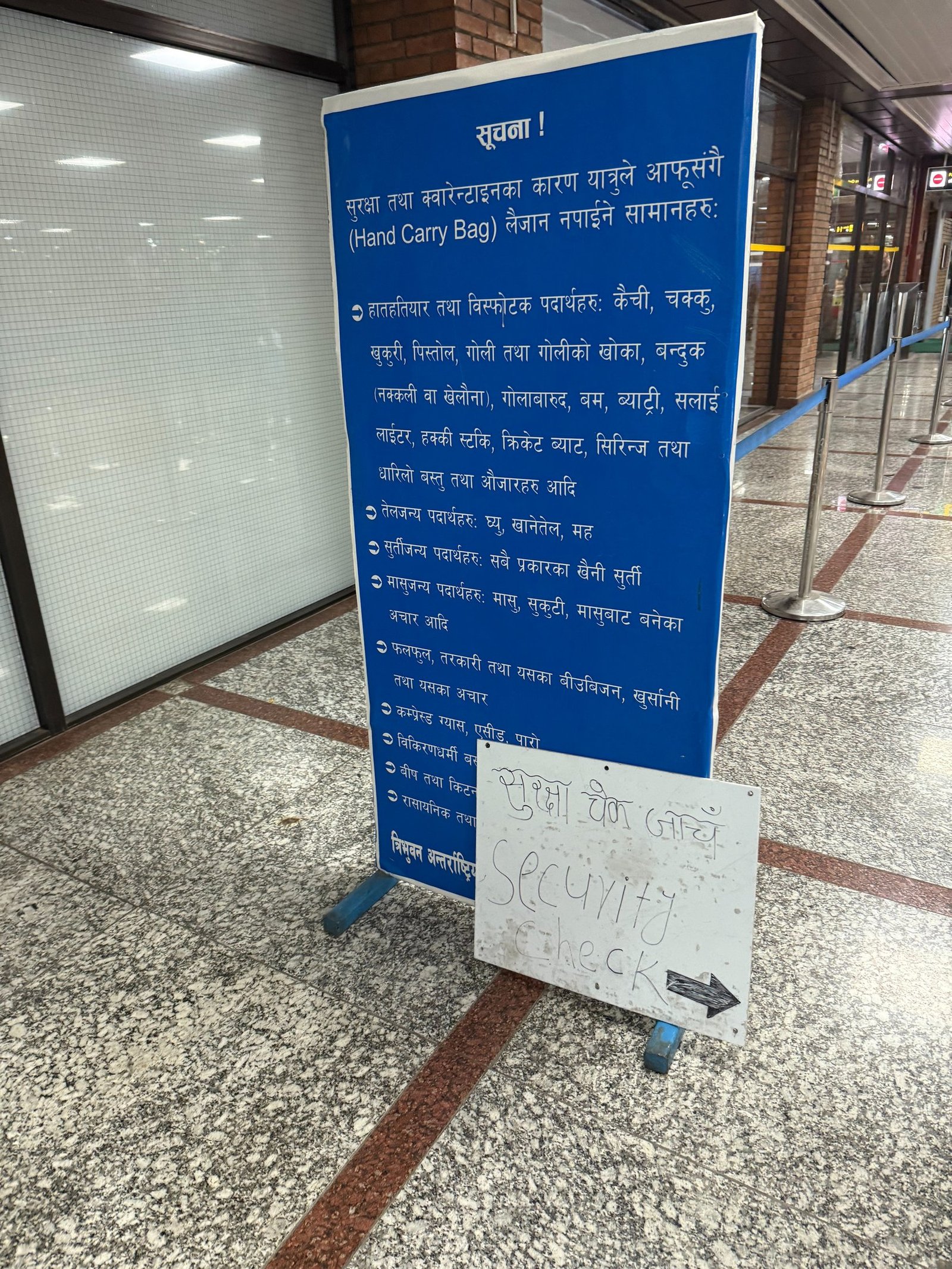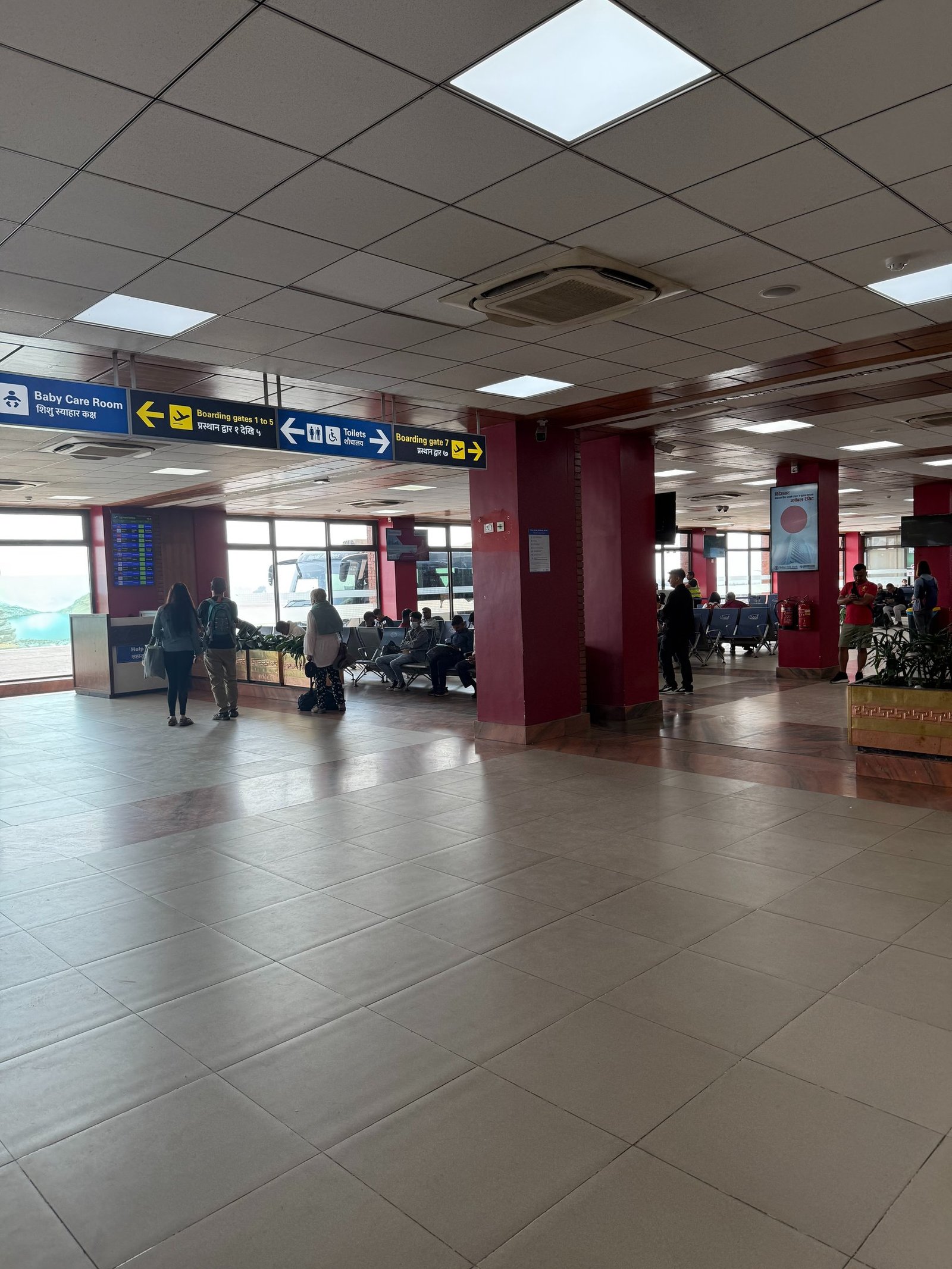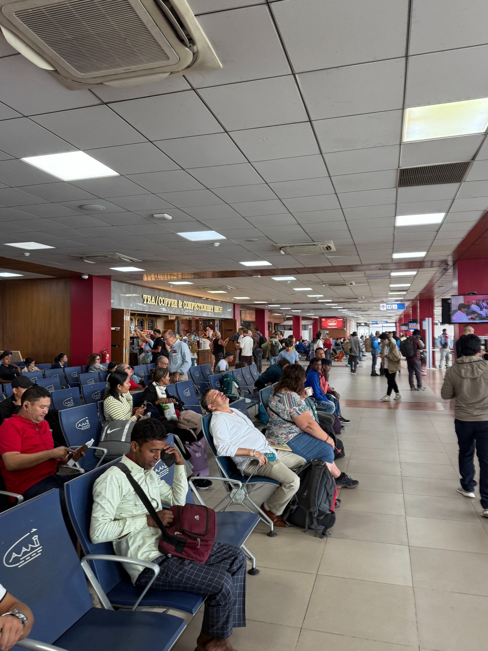 After you collect your bags, you can find the check-in desks for your flight. There are screens that show the flights and the check-in counters that you need to go to. Overall, it’s a small airport, but as is the norm in Nepal and other similar countries, it can feel chaotic, and the same rules (like personal space) don’t apply here. The check-in desks open 3 hrs prior to your flight.